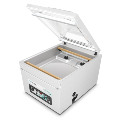 Вакуумный упаковщик Henkelman Jumbo 42 XLII идеален для ресторанов и маленьких производств. Используется для вакуумной упаковки пищевых продуктов. Рассчитан на 6 - 8 часов работы в день, с промежутками для остановки и отдыха. Снабжен сенсорной панелью управления. Сварочные струны имеют полукруглую форму для запайки испачканных жиром пакетов.